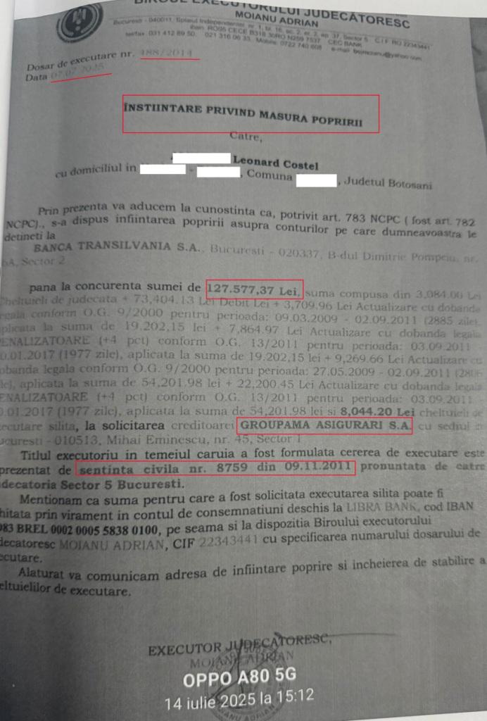Ce poate sa fie legal in faptul ca in anul 2011 , Groupama Asigurari a obtinut o hotarare judecatoreasca prin care il obliga la plata pe debitor pentru o suma colosala iar mai apoi 3 ani de zile mai tarziu, in 2014, aceeasi societate de asigurari a dispus inceperea executarii silite prin executorul judecatoresc Moianu Adrian pentru ca executarea silita din 2014 sa mai fie continuata tocmai in 2025 la un interval de 9 ani de zile distanta, adica de 3 ori peste termenul de prescriptie.